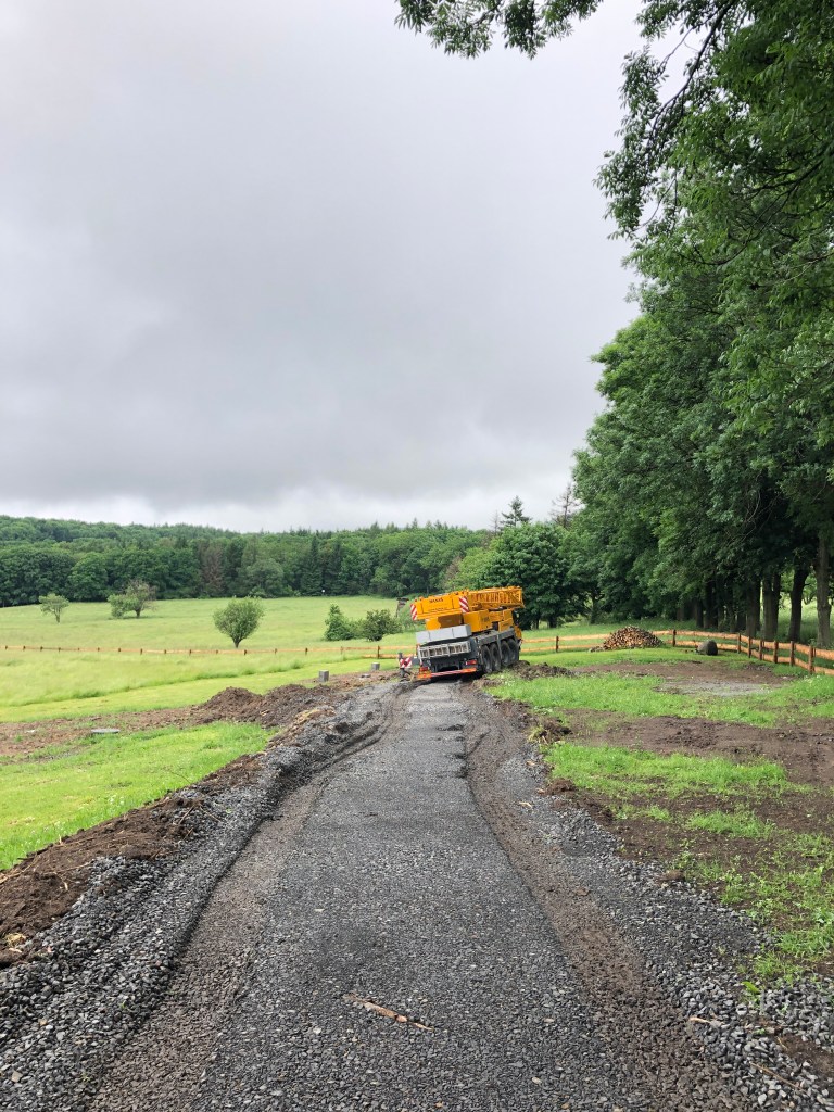 With a crane.
